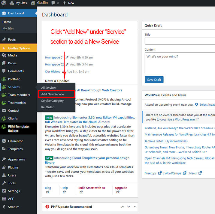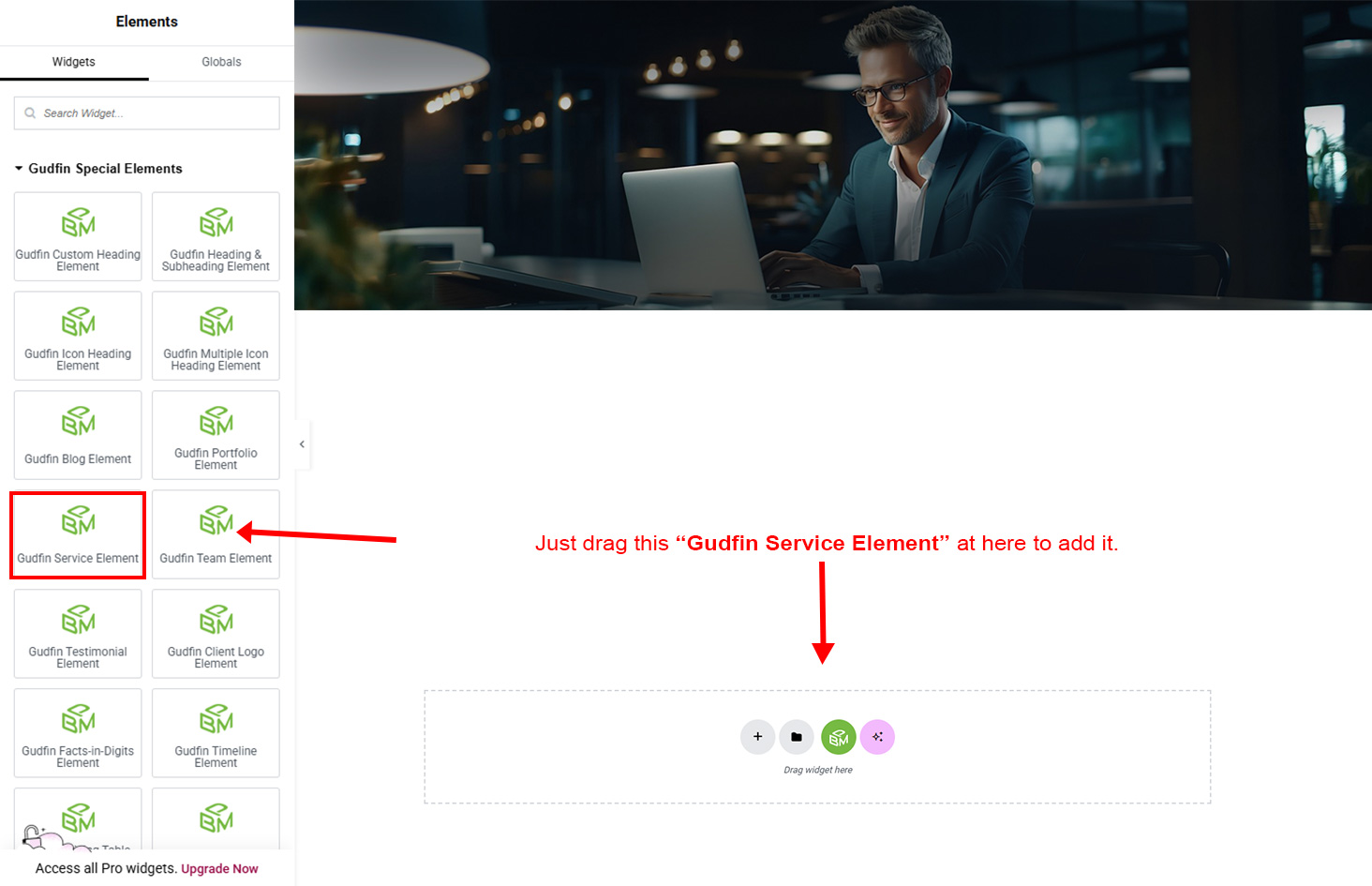 Now we have some Service posts. So we can show all Service on a page. Create a new page and add Gudfin Service Element on a page by dragging it.