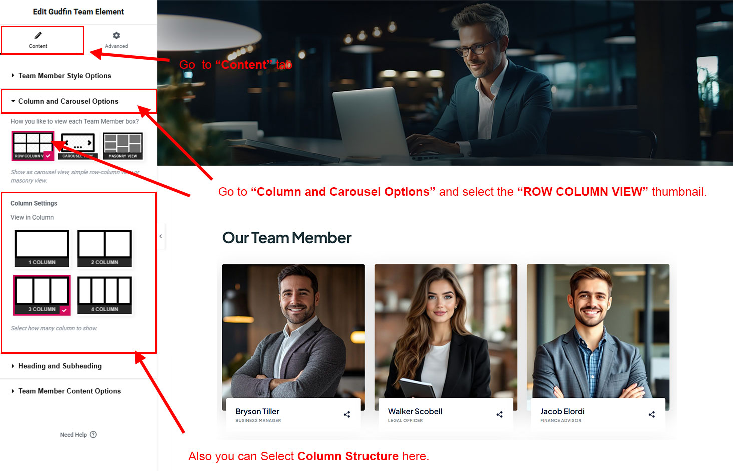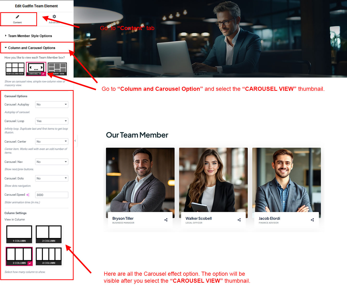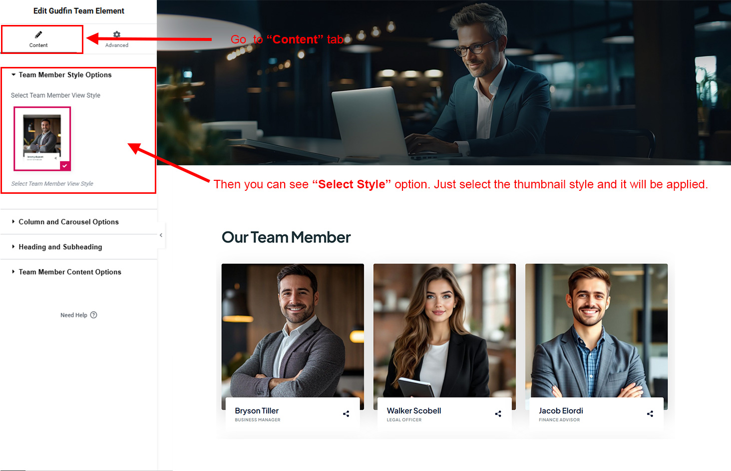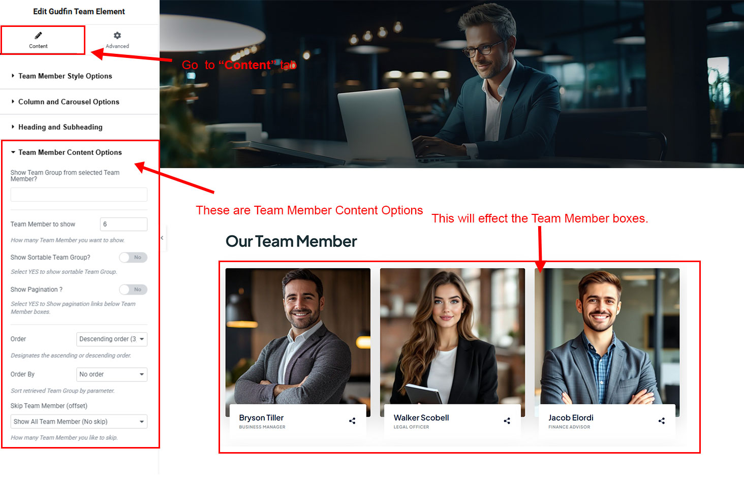 You can select the team options here. Like how many team you like to show, show team from selected category, team order etc.