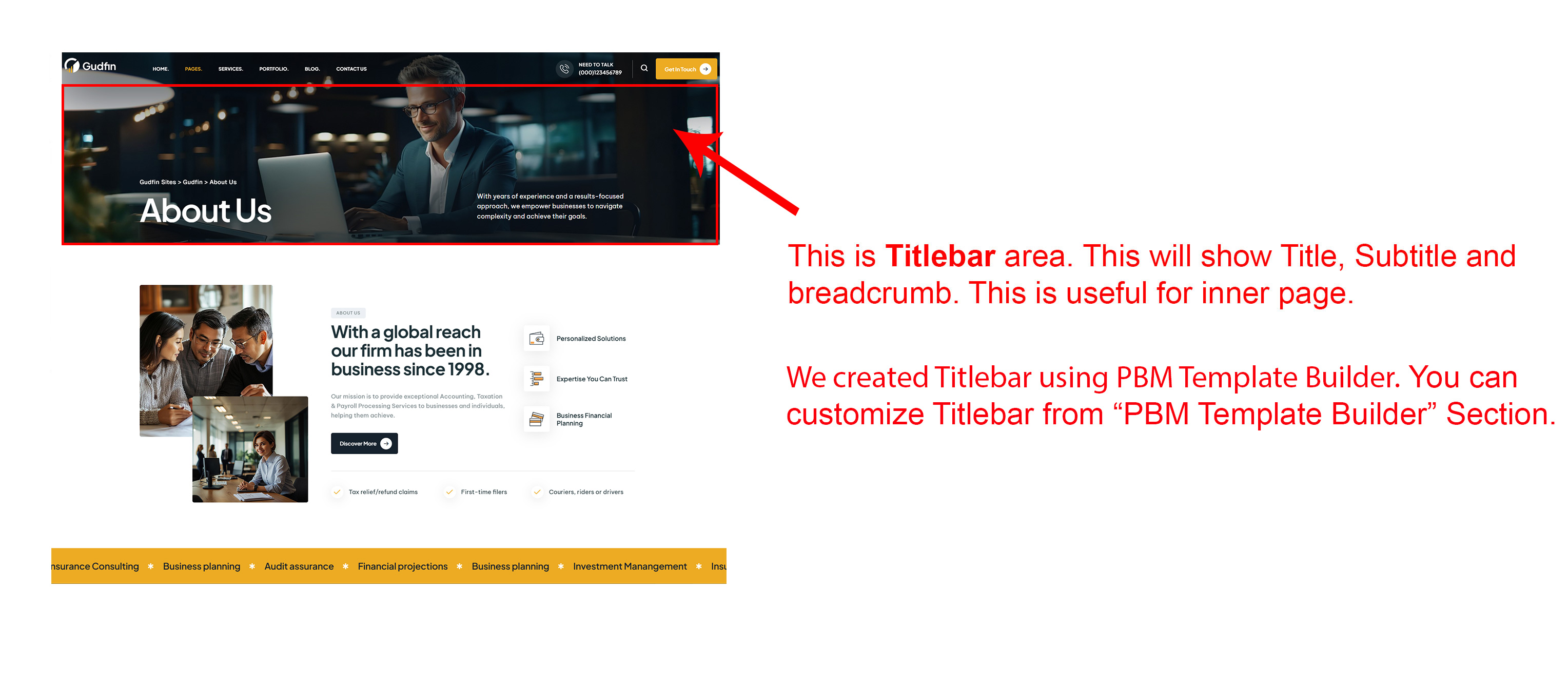 Titlebar will appear below header and slider. This will show page title, sub-title and breadcrumb.