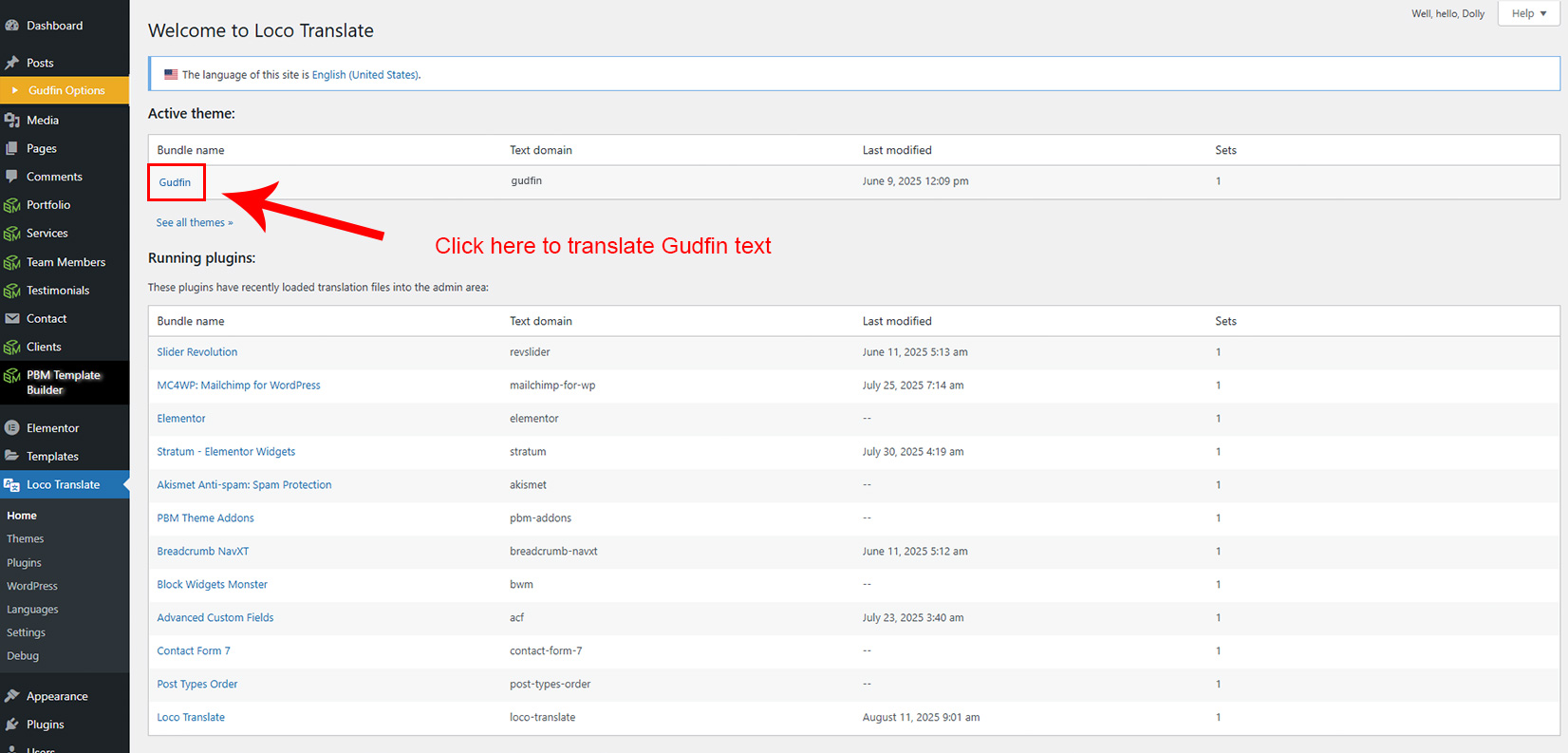 3. Now go to Loco Translate section and click on Gudfin theme.