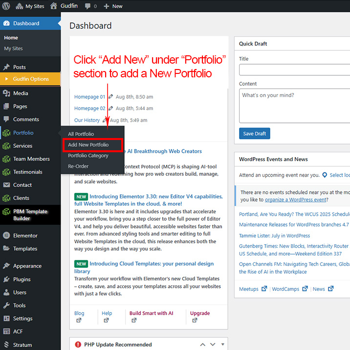 First go to Portfolio >> Add New to create a new Portfolio.