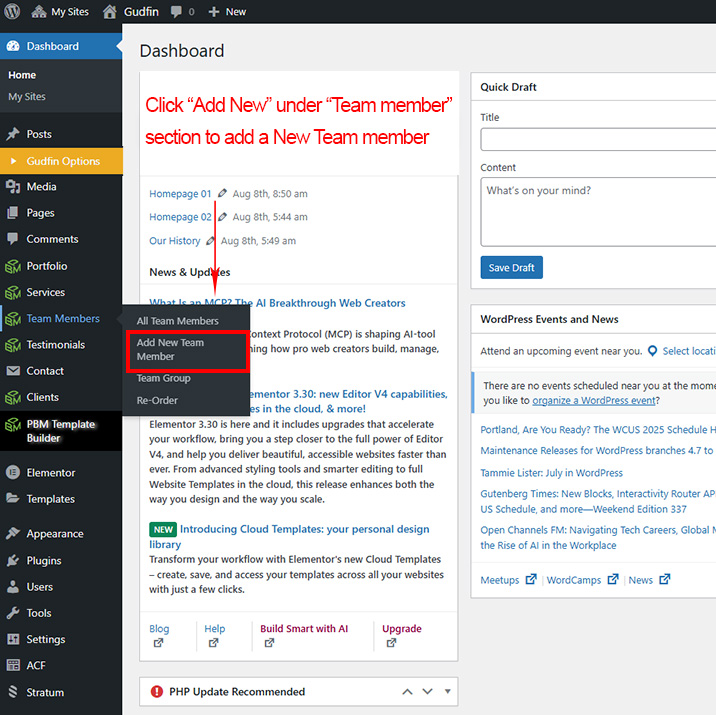 First go to Team >> Add New to create a new Team.