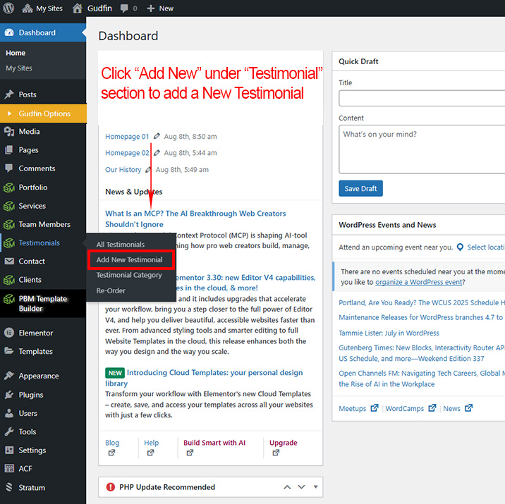 First go to Testimonial >> Add New to create a new Testimonial.