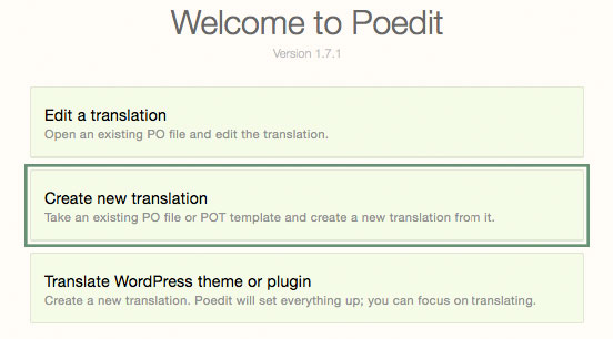 Open the gudfin.pot in POEdit by selecting "New from POT/PO file...".