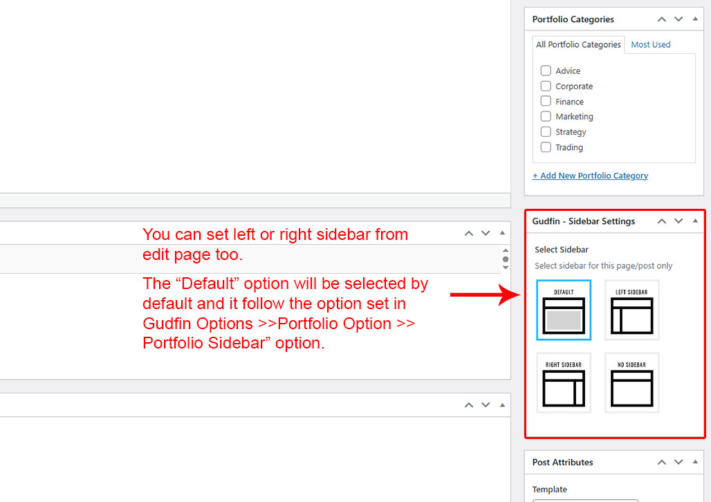 This is specially created sidebar postion for Portfolio single view only. You can select sidebar view (left or right) in Gudfin Options >> Portfolio Options section. Also you can show single Portfolio without sidebar too.
