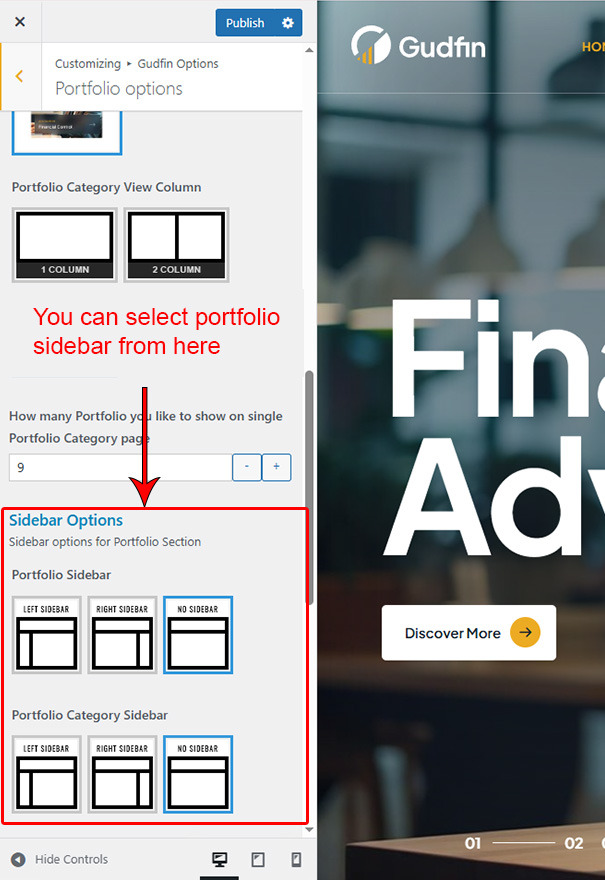 This is specially created sidebar postion for Portfolio Category view only. You can select sidebar view (left or right) in Gudfin Options >> Portfolio Options section. Also you can show Portfolio Category without sidebar too.