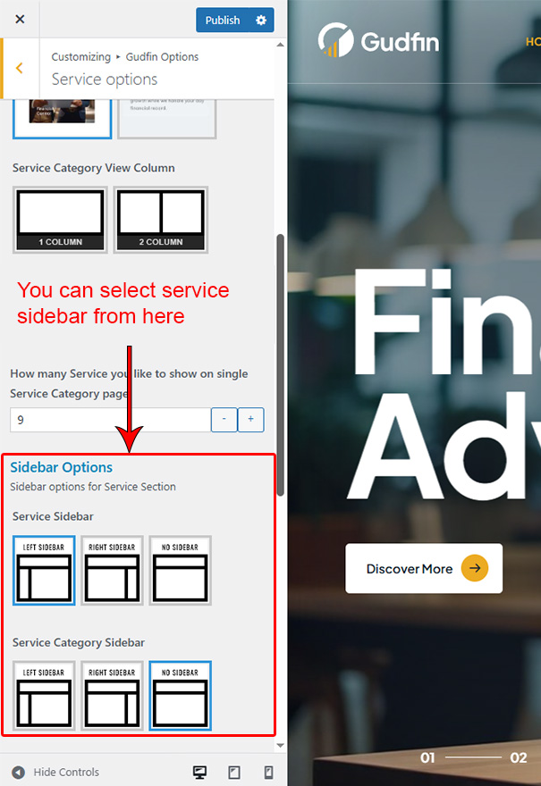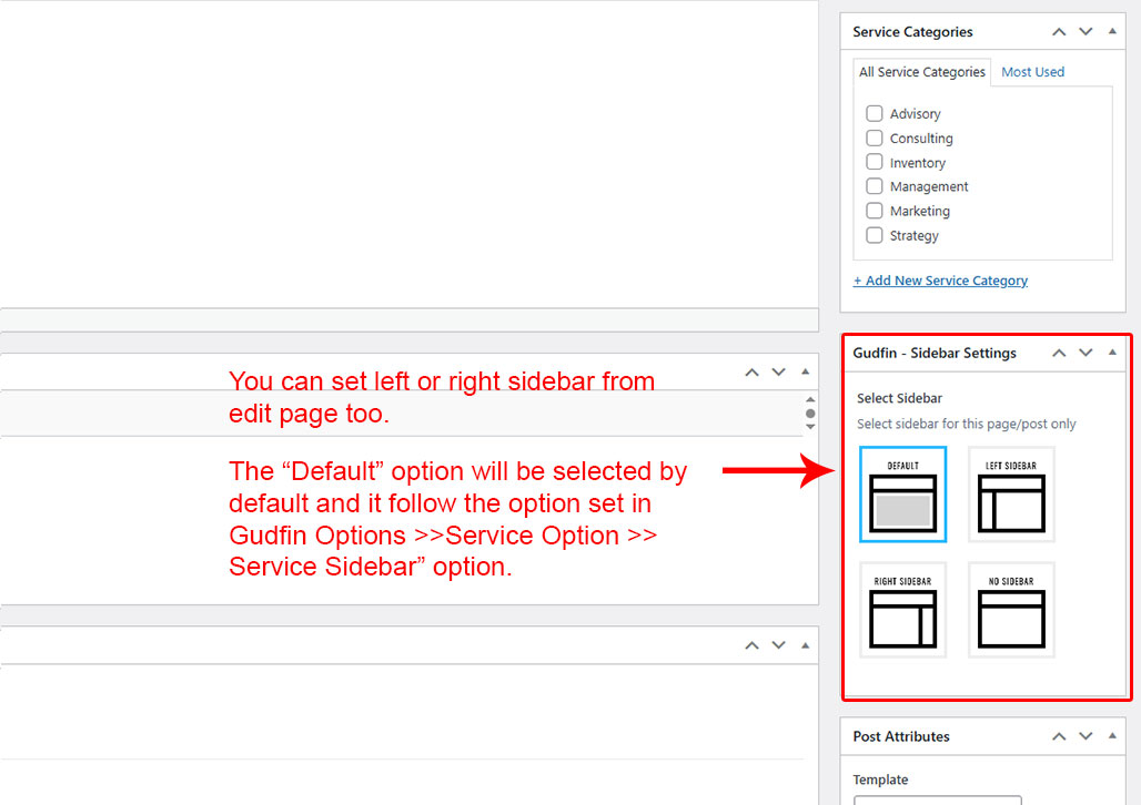 This is specially created sidebar postion for Service single view only. You can select sidebar view (left or right) in Gudfin Options >> Service Options section. Also you can show single Service without sidebar too.