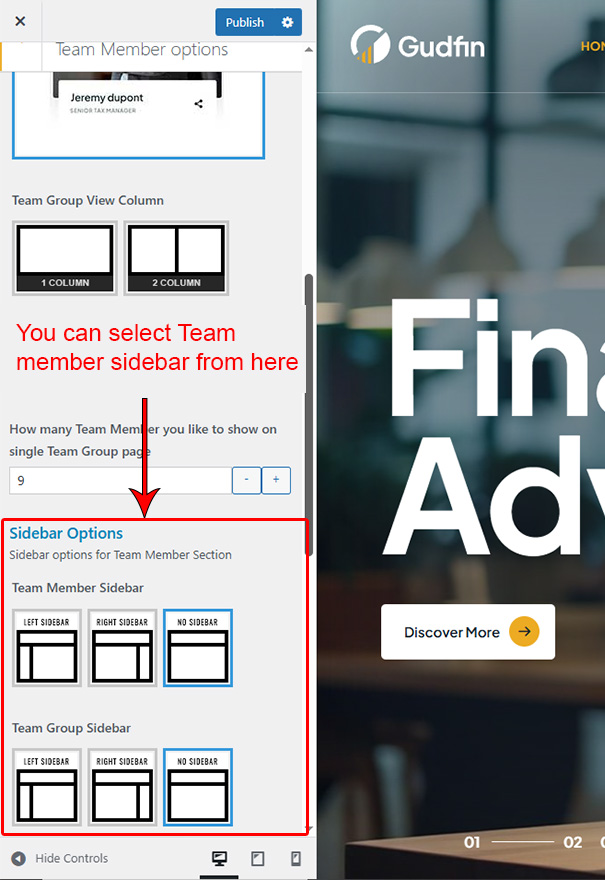 This is specially created sidebar postion for Team Member single view only. You can select sidebar view (left or right) in Gudfin Options >> Team Member Options section. Also you can show single Team Member without sidebar too.