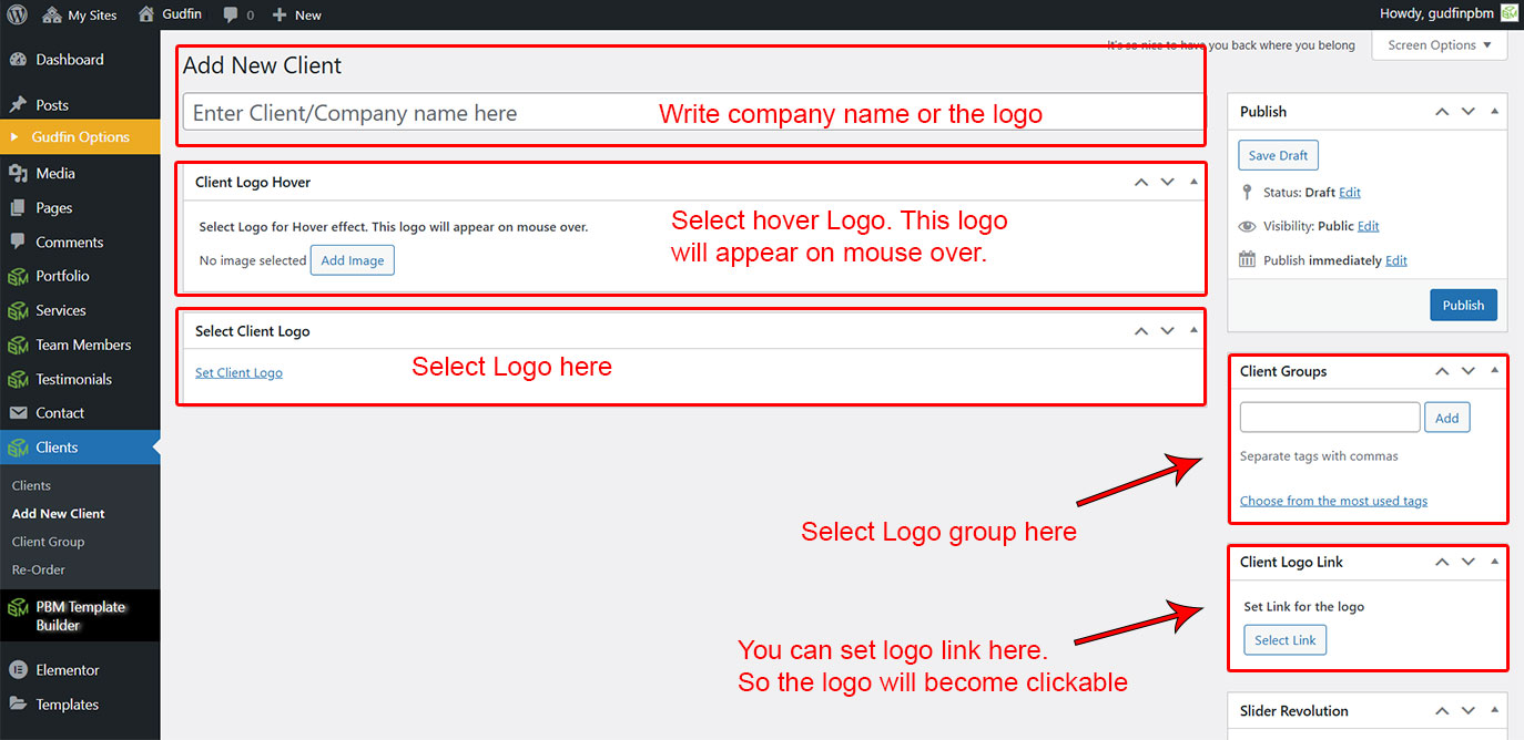 This will add a new logo. Repeat this steps and add some 3 or 6 client logo posts with the steps described above.