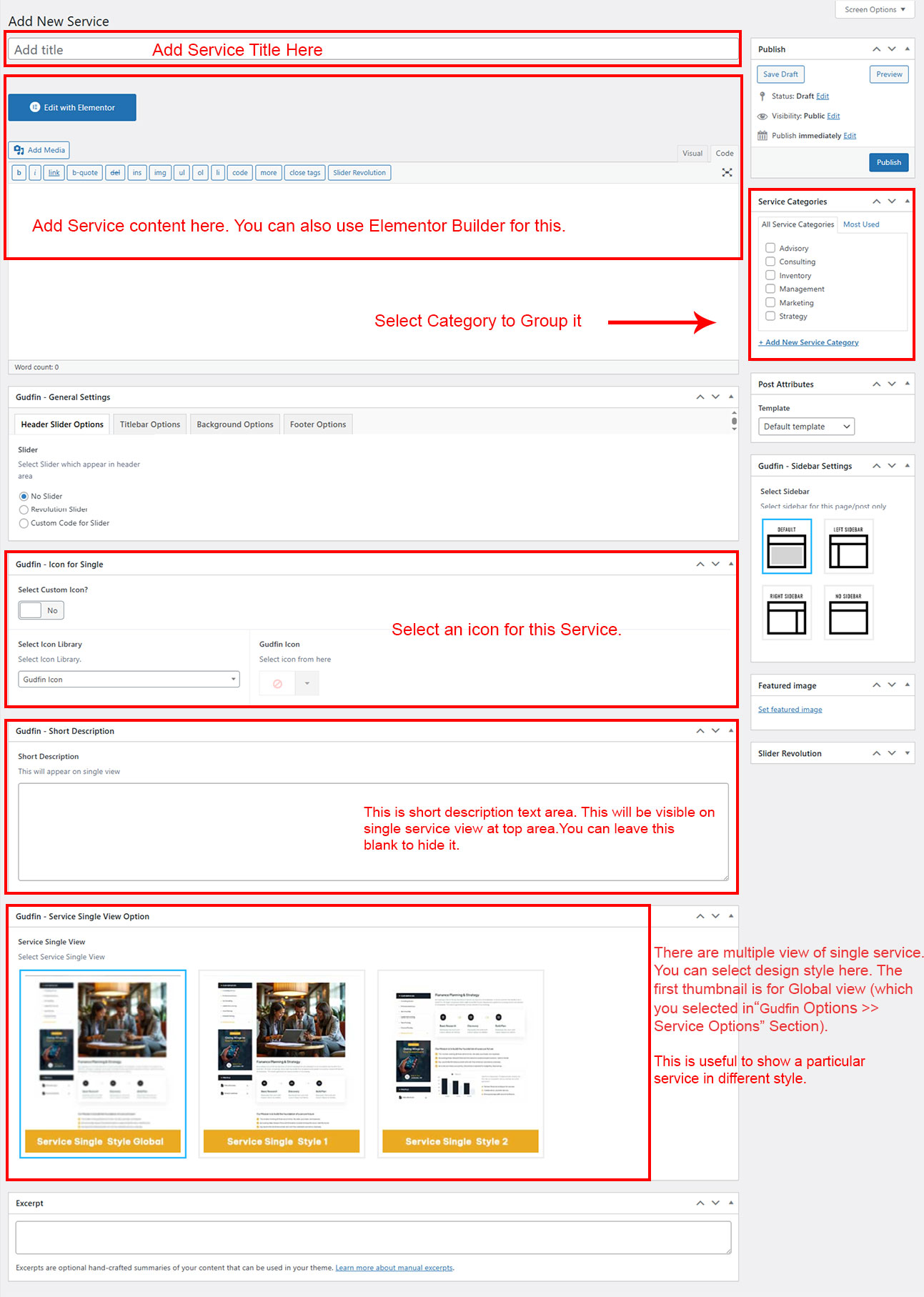 If you already done demo content setup than you can edit existing service and check how we added data so you can understand each option perfectly.