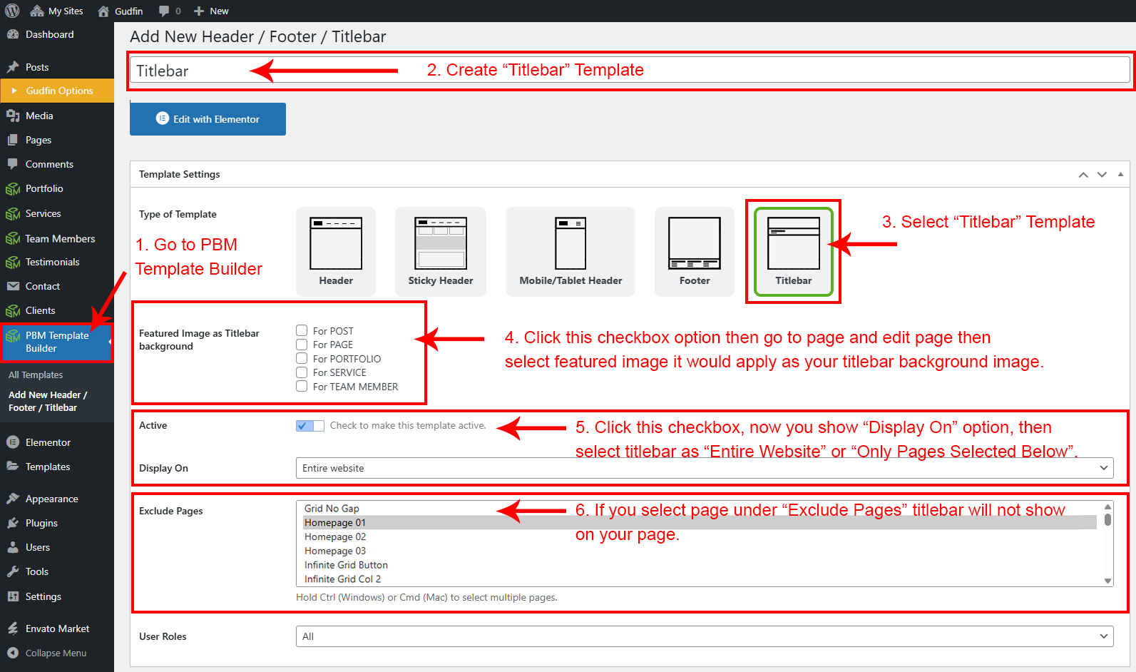 You can see the screensot of the Titlebar Typography Settings ( which appear under Gudfin Options) provided on the right side.