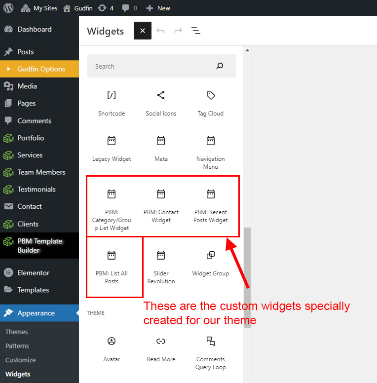 There are some widgets created specially for Gudfin theme. Here are the widgets: